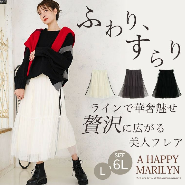 他の画像を見る ボトムス チュールスカート LL 3L 4L 5L 6L 春 春物 春服 ぽっちゃり ゆったり プラスサイズ 太もも お尻 腰周り かわいい おしゃれ ライン入り 細魅せ チュール レース フレアスカート | 大きいサイズの通販ならハッピーマリリン 価格 ¥ 3,490 税込 4.60 お気に入りに登録する