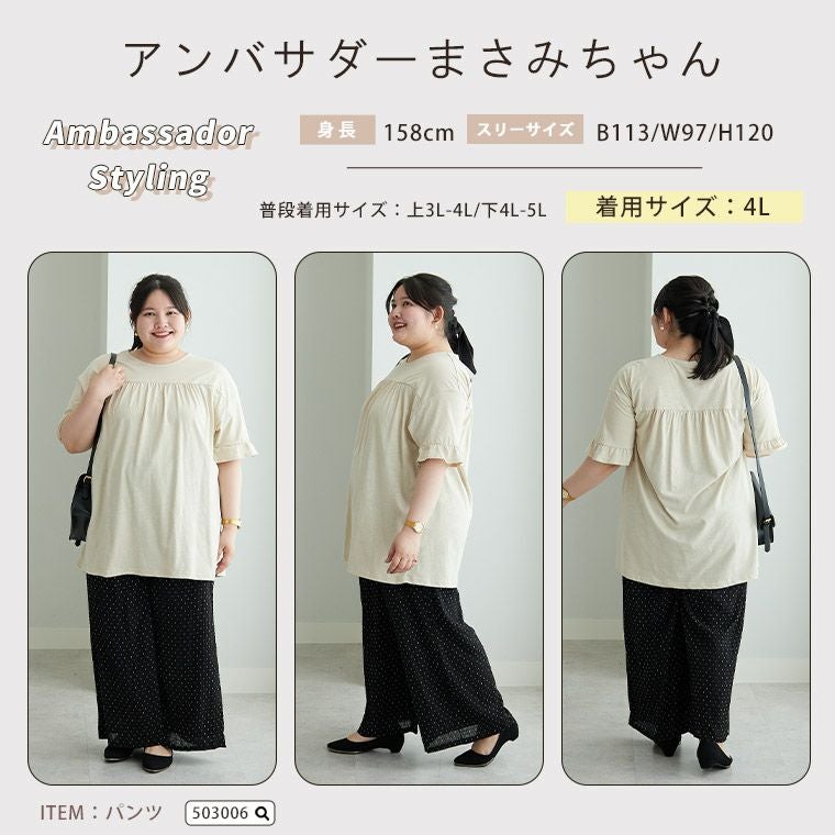 他の画像を見る チュニック LL 3L 4L 5L 6L 半袖 夏 夏物 夏服 夏用 ぽっちゃり ゆったり プラスサイズ 接触冷感 かわいい おしゃれ お腹 お尻 二の腕カバー 夏の味方! 可愛くてひんやり! 綿100% コットン ギャザー チュニック | 大きいサイズの通販ならハッピーマリリン 価格 ¥ 2,190 税込 4.31 お気に入りに登録する
