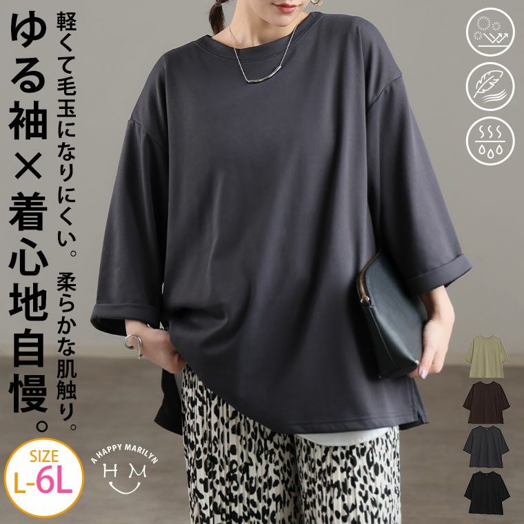 他の画像を見る プルオーバー カットソー 軽量 吸水速乾 毛玉になりにくい LL 3L 4L 5L 6L 春 春物 春服 夏 夏物 夏服 ぽっちゃり お腹 お尻 二の腕カバー 【新作◆3月11日販売】 さらっとドライタッチ 袖折り返し 七分袖 ゆったり プルオーバー | 大きいサイズの通販ならハッピーマリリン NEW HIT100 価格 ¥ 2,190 税込 お気に入りに登録する