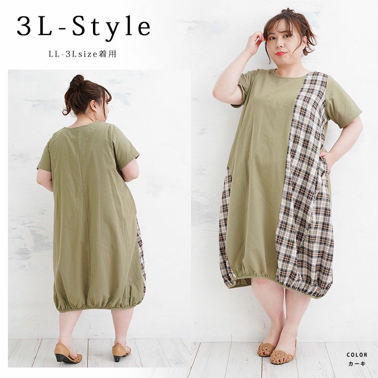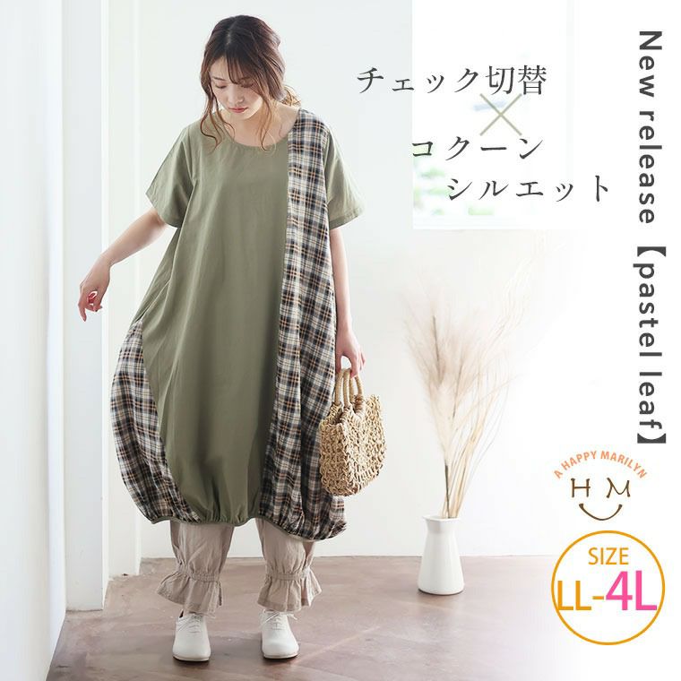 他の画像を見る ワンピ デザインワンピ LL 3L 4L 夏 夏物 夏服 夏用 ぽっちゃり ゆったり お尻 腰回り パステルリーフ かわいい カジュアル ナチュラル プラスサイズ 【Pastel Leaf】チェック柄 切替 裾タック ワンピース | 大きいサイズの通販ならハッピーマリリン 在庫特価 定価 ¥ 4,490 のところ 価格 ¥ 2,500 税込 5.00 お気に入りに登録する
