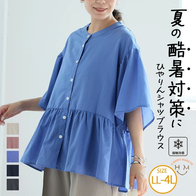 他の画像を見る シャツ トップス LL 3L 4L 夏 夏物 夏服 秋 秋物 秋冬 ぽっちゃり ゆったり プラスサイズ 接触冷感 かわいい おしゃれ カジュアル ナチュラル お腹 お尻 春 酷暑に負けない! ひんやり フレア ブラウス | 大きいサイズの通販ならハッピーマリリン 価格 ¥ 3,490 税込 5.00 お気に入りに登録する
