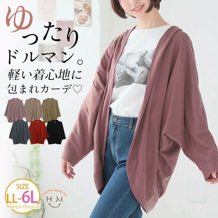 他の画像を見る カーディガン カーデガン 羽織り ニット LL 3L 4L 5L 6L 長袖 春 春物 春服 ぽっちゃり ゆったり プラスサイズ カジュアル かわいい 二の腕カバー お尻 たっぷり ドルマンカーディガン ワッフル素材 | 大きいサイズの通販ならハッピーマリリン 価格 ¥ 2,990 税込 4.50 お気に入りに登録する