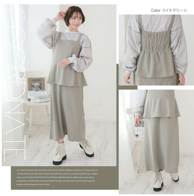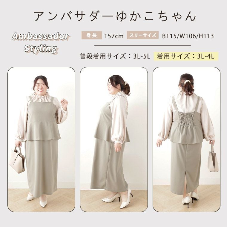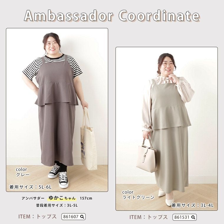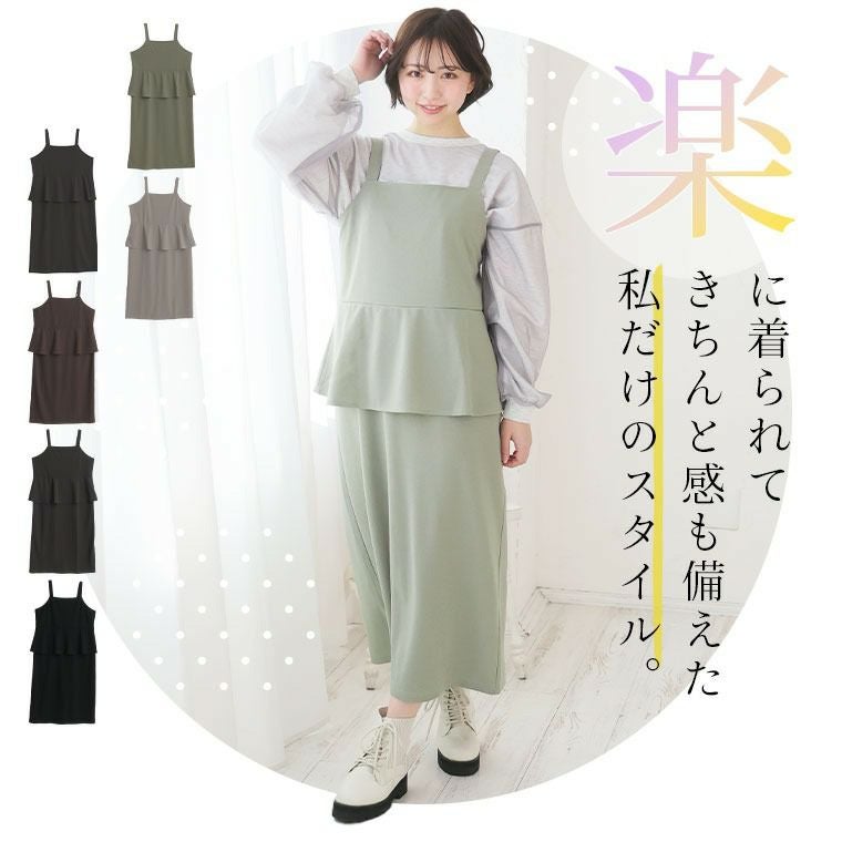 他の画像を見る ジャンパースカート LL 3L 4L 5L 6L 春 春物 春服 夏 夏物 夏服 新色追加!! スポッと着られる!! ”楽かわ”シリーズ! お腹・お尻隠す セットアップ見え ペプラム ジャンスカ | 大きいサイズの通販ならハッピーマリリン SALE 定価 ¥ 3,490 のところ 価格 ¥ 2,440 税込 4.36 お気に入りに登録する