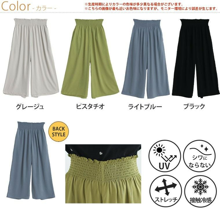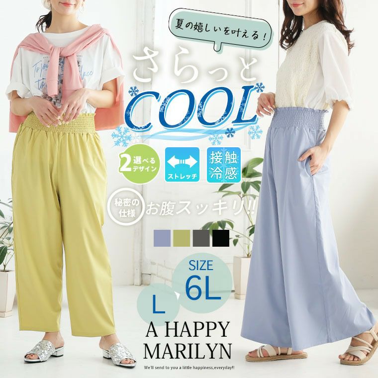 他の画像を見る ボトムス ワイドパンツ LL 3L 4L 5L 6L 夏 夏物 夏服 夏用 ぽっちゃり ゆったり プラスサイズ お腹 太もも 胸周り お尻 腰周り 接触冷感 楽してひんやり! お腹魅せ 接触冷感 ウエストシャーリング ワイドパンツ【ウェストゴム】【ストレッチ】 | 大きいサイズの通販ならハッピーマリリン 価格 ¥ 2,790 税込 3.63 お気に入りに登録する