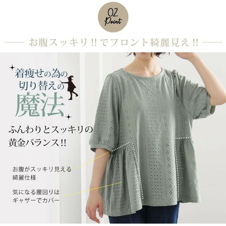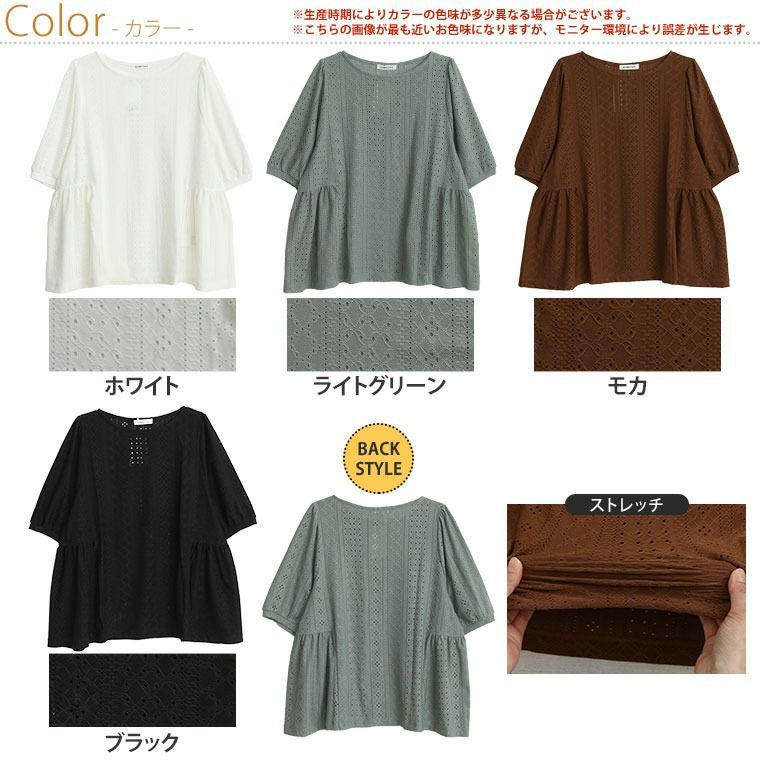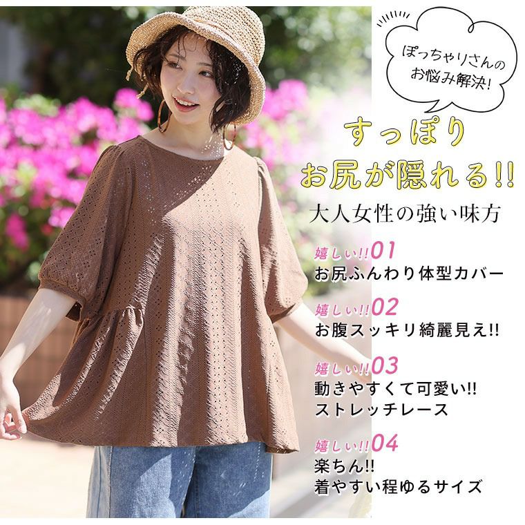 他の画像を見る シャツ トップス LL 3L 4L 5L 6L 半袖 五分袖 夏 夏物 夏服 夏用 ぽっちゃり ゆったり お腹 お尻 涼しく可愛く! お腹スッキリ 腰回りカバー! ストレッチ レース ペプラム風 プルオーバー ブラウス | 大きいサイズの通販ならハッピーマリリン 価格 ¥ 1,980 税込 4.60 お気に入りに登録する