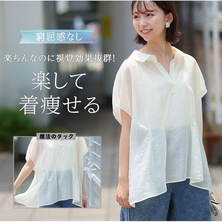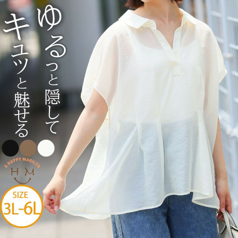 他の画像を見る ブラウス トップス LL 3L 4L 5L 春 春物 春服 夏 夏物 夏服 秋 ぽっちゃり ゆったり プラスサイズ カジュアル 前開き ボタン 体型カバー 羽織り お腹 お尻 二の腕カバー 【新作◆3月20日販売】 お腹カバー シアー 裾タック シャツ | 大きいサイズの通販ならハッピーマリリン NEW 価格 ¥ 3,990 税込 お気に入りに登録する