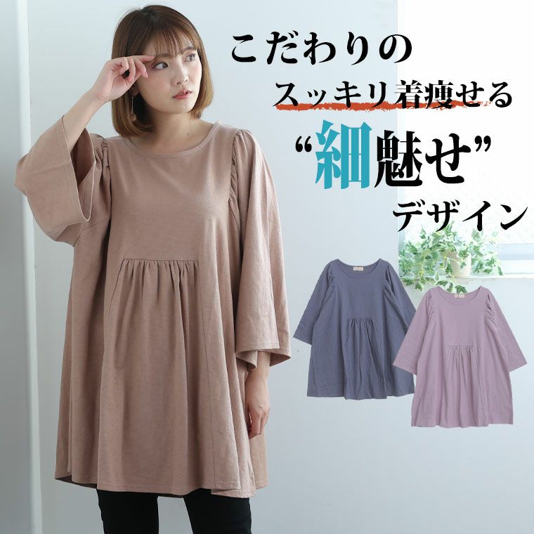 他の画像を見る オリジナル チュニック カットソー LL 3L 4L 5L 6L 秋 お腹 太もも 胸周り 二の腕カバー お尻 腰周り さらりと綿100% 大人の七難神隠し お腹ふんわりカバー コットンギャザーチュニック | 大きいサイズの通販ならハッピーマリリン 価格 ¥ 3,990 税込 4.50 お気に入りに登録する