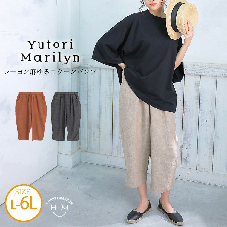 他の画像を見る ボトムス イージーパンツ LL 3L 4L 5L 6L 夏 夏物 夏服 夏用 ぽっちゃり ゆったり お腹 太もも お尻 腰周り リネン レーヨン 麻 yutorimarilyn ゆとりマリリン 「ゆとりMARILYN」レーヨン麻 ゆる コクーンパンツ【ウェストゴム】 | 大きいサイズの通販ならハッピーマリリン 価格 ¥ 6,990 税込 4.00 お気に入りに登録する