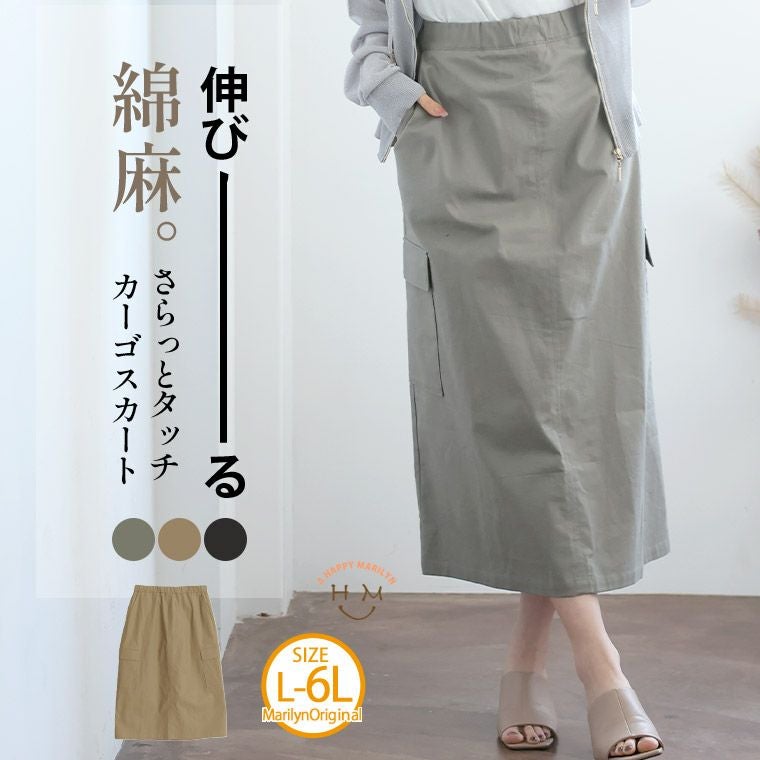 他の画像を見る オリジナル ボトムス ロングスカート LL 3L 4L 5L 6L 夏 夏物 夏服 ぽっちゃり ゆったり リネン 麻 ストレッチ 綿 コットン ナロースカート タイトスカート お腹 お尻 腰周り 伸びる綿麻 さらっとタッチ カーゴスカート | 大きいサイズの通販ならハッピーマリリン 価格 ¥ 4,590 税込 4.43 お気に入りに登録する