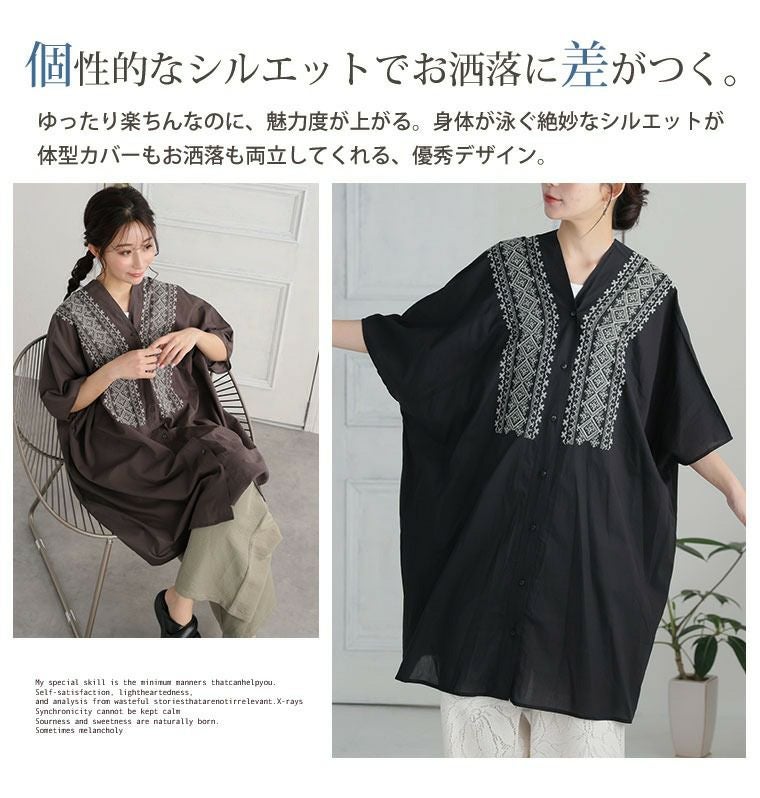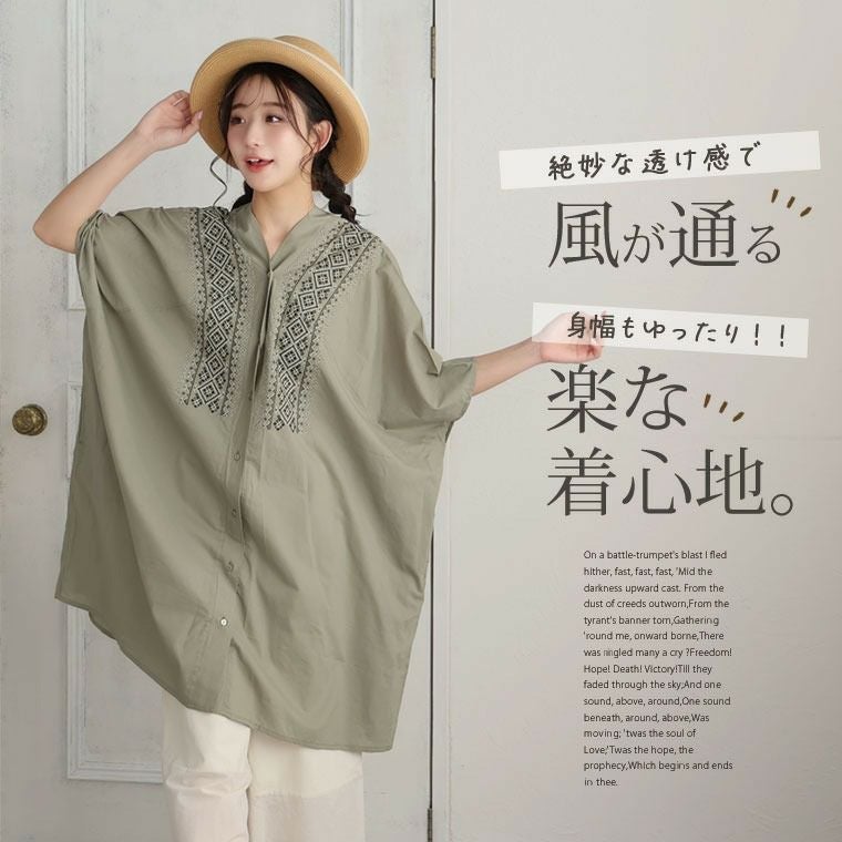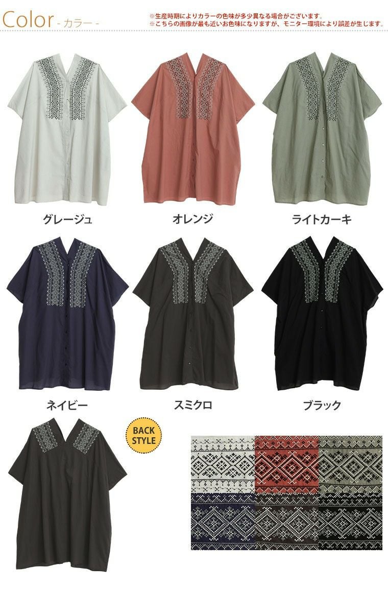 他の画像を見る トップス 綿100% LL 3L 4L 5L 6L ノースリーブ 半袖夏 夏物 夏服 夏用 ぽっちゃり ゆったり プラスサイズ カジュアル ナチュラル お腹 お尻 二の腕カバー 【さら軽コットン】 刺繍使い シャツ チュニック | 大きいサイズの通販ならハッピーマリリン 価格 ¥ 3,290 税込 4.00 お気に入りに登録する