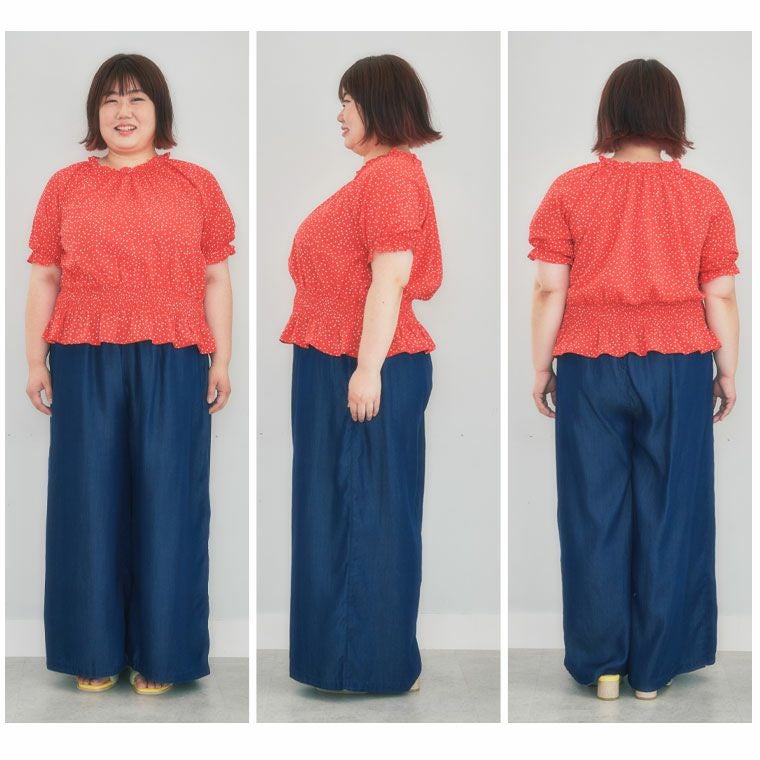他の画像を見る ボトムス LL 3L 4L 5L 夏 夏物 夏服 ぽっちゃり ゆったり プラスサイズ Rin 楽ふわ 脚長美脚 ぽっこりお腹をすっきりカバー タックギャザー シフォンワイドパンツ 柄 ストライプ ドット 水玉 | 大きいサイズの通販ならハッピーマリリン 価格 ¥ 3,990 税込 3.50 お気に入りに登録する