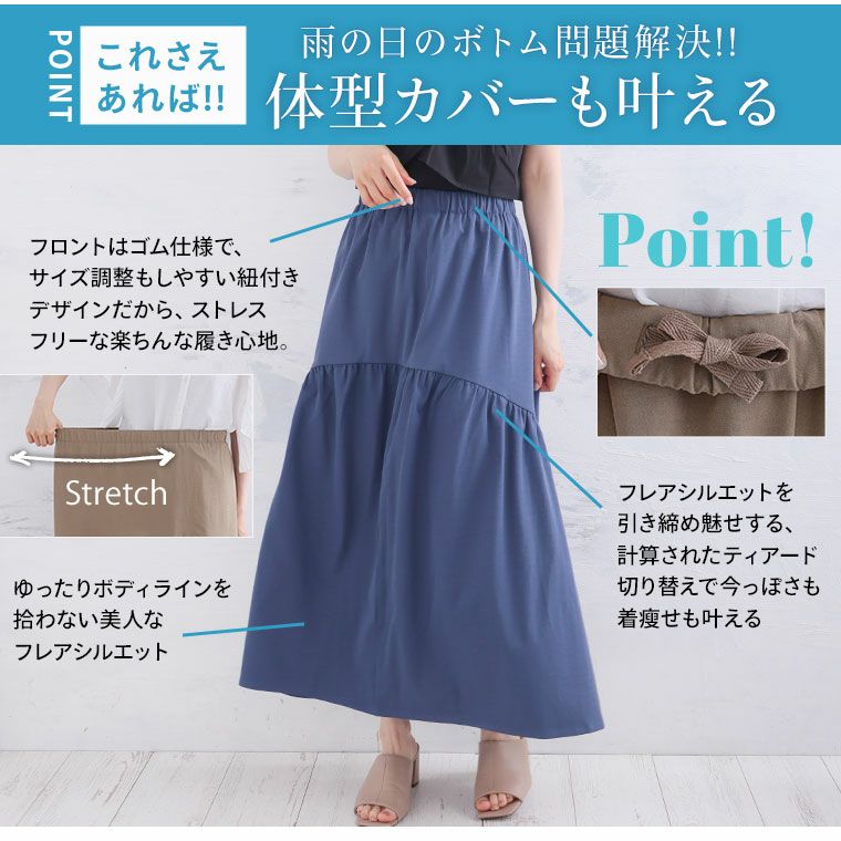他の画像を見る オリジナル フレアスカート ボトムス LL 3L 4L 5L 6L 夏 夏物 夏服 夏用 忙しいママも、雨の日も安心! 撥水&ストレッチ ツイル ぽっこりお腹をスッキリ魅せる 美脚フレア ギャザー ティアード スカート | 大きいサイズの通販ならハッピーマリリン 価格 ¥ 3,990 税込 4.31 お気に入りに登録する