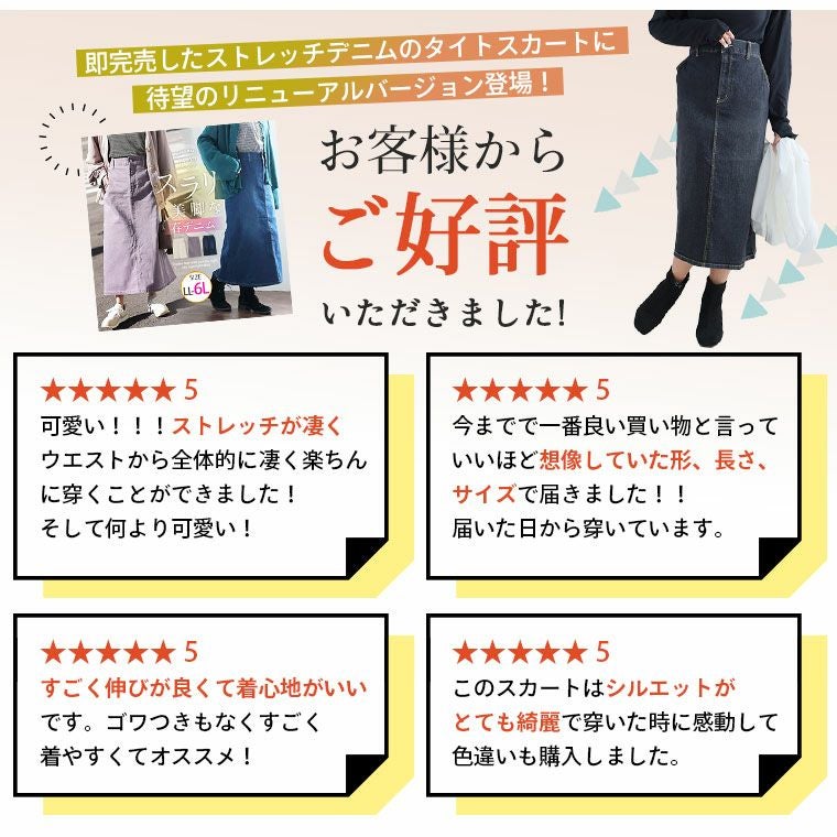 他の画像を見る オリジナル ボトムス タイトスカート LL 3L 4L 5L 6L 秋 秋物 秋服 冬 冬物 冬服 ナロースカート カラーデニム 「天才シルエットスカート」 楽なのにキレイ ストレッチ デニム タイトスカート | 大きいサイズの通販ならハッピーマリリン 小柄さん丈有 在庫特価 定価 ¥ 3,490 のところ 価格 ¥ 2,500 税込 4.36 お気に入りに登録する