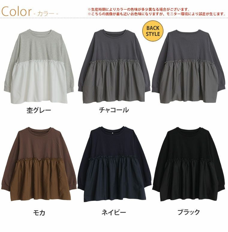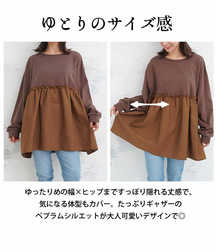 他の画像を見る オリジナル トップス スウェット トレーナー プルオーバー LL 3L 4L 5L 6L 7L 8L 秋 秋物 秋服 冬 冬物 冬服 ぽっちゃり ゆったり 【裏 起毛の服苦手さんにおススメ】 ペプラム ギャザー スウェット | 大きいサイズの通販ならハッピーマリリン 在庫特価 定価 ¥ 3,990 のところ 価格 ¥ 3,000 税込 3.55 お気に入りに登録する