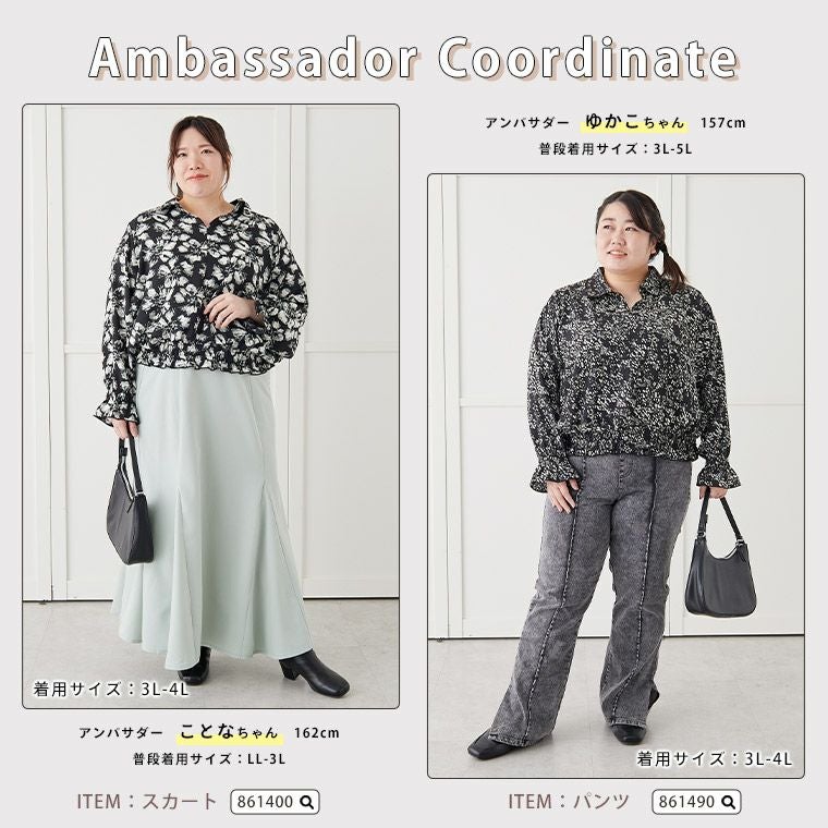 他の画像を見る オリジナル ブラウス シャツ トップス LL 3L 4L 5L 6L 秋 冬 シャーリング 柄ブラウス フレア袖 ぽっちゃり ゆったり キュッとしてても苦しくない! ウエストが伸びーる 開襟 ブラウス | 大きいサイズの通販ならハッピーマリリン 価格 ¥ 2,990 税込 3.33 お気に入りに登録する