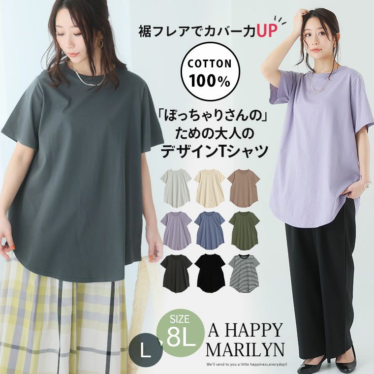 他の画像を見る カットソー プルオーバー 丈長め オーバーサイズ LL 3L 4L 5L 6L 7L 8L 半袖 春 春物 春服 夏 夏物 夏服 ぽっちゃり ゆったり 新色追加!! 魔法のお腹カバー 綿100 裾フレア Tシャツ | 大きいサイズの通販ならハッピーマリリン HIT100 価格 ¥ 1,980 税込 4.33 お気に入りに登録する
