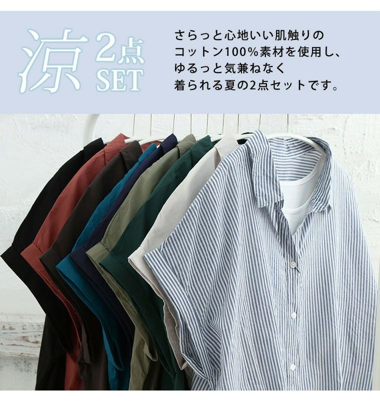 他の画像を見る LL 3L 4L 5L 6L 半袖 ノースリーブ 夏 夏物 夏服 夏用 ぽっちゃり ゆったり プラスサイズ カジュアル お腹 【さら軽コットン】 フロントタック使い シャツ × タンクトップ アンサンブル | 大きいサイズの通販ならハッピーマリリン 価格 ¥ 2,190 税込 3.07 お気に入りに登録する