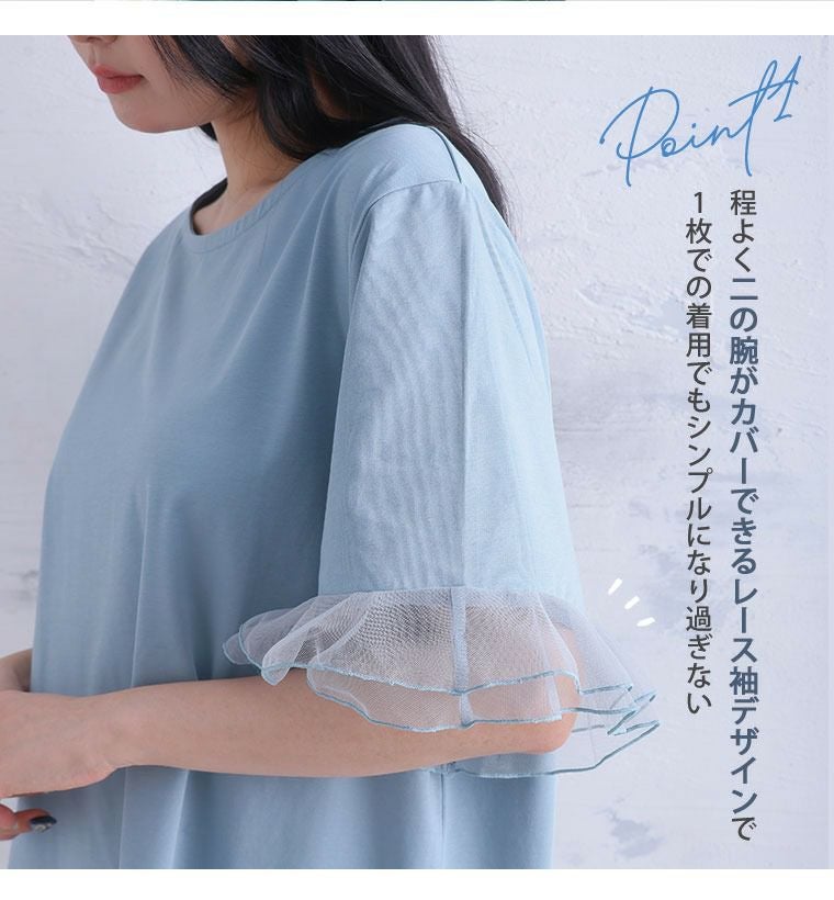 他の画像を見る カットソー LL 3L 4L 5L 6L 半袖 五分袖 夏 夏物 夏服 夏用 ぽっちゃり ゆったり お腹 二の腕カバー 腰周り 接触冷感 さらすべ滑らか!! 肌触り自慢のシルケット ひんやり レース袖 Tシャツ | 大きいサイズの通販ならハッピーマリリン 価格 ¥ 2,490 税込 4.11 お気に入りに登録する
