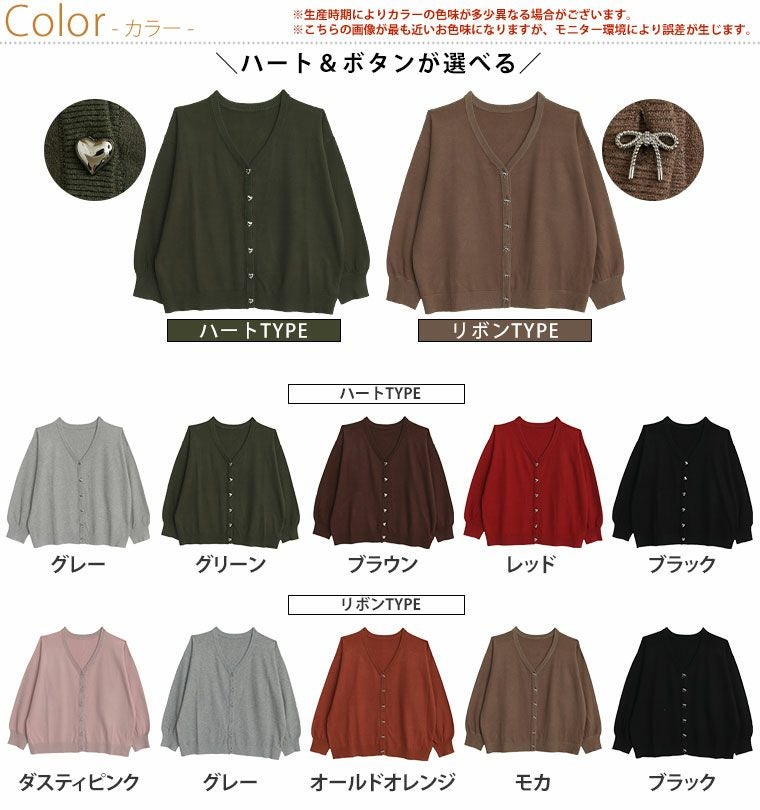 他の画像を見る トップス 羽織り LL 3L 4L 5L 6L 7L 8L ゃり ゆったり プラスサイズ ニット ニットカーデ もっちり お腹 ハートとリボンで選べる! スカート派さんが嬉しい スタイルアップ もっちり Vネックカーデ | 大きいサイズの通販ならハッピーマリリン 価格 ¥ 2,990 税込 4.20 お気に入りに登録する