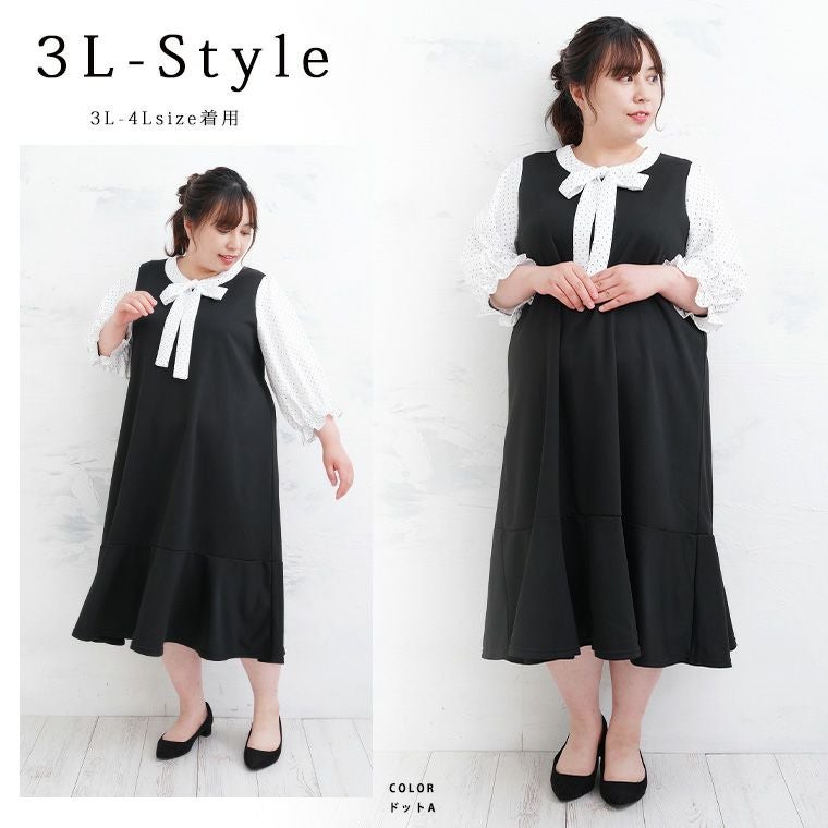 他の画像を見る ワンピ デザインワンピ LL 3L 4L 5L 6L 春 春物 春服 ぽっちゃり ゆったり お腹 太もも 二の腕カバー 長袖 プラスサイズ Rin 袖切替え 美人 ポンチ マーメイドワンピース ボウタイ チェック 柄 ドット 花柄 | 大きいサイズの通販ならハッピーマリリン 在庫特価 定価 ¥ 4,990 のところ 価格 ¥ 2,500 税込 4.50 お気に入りに登録する