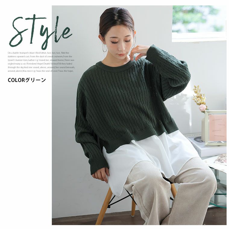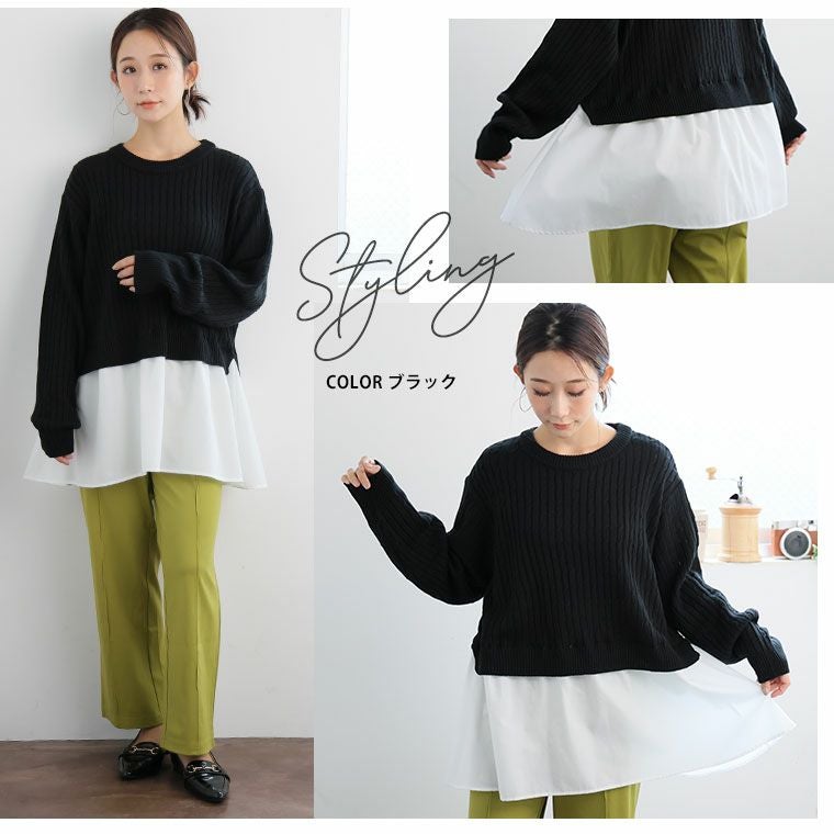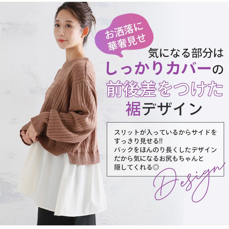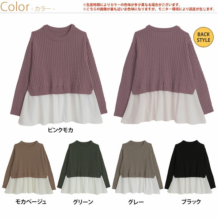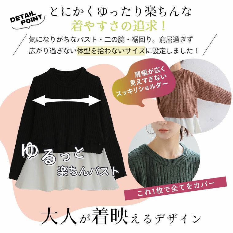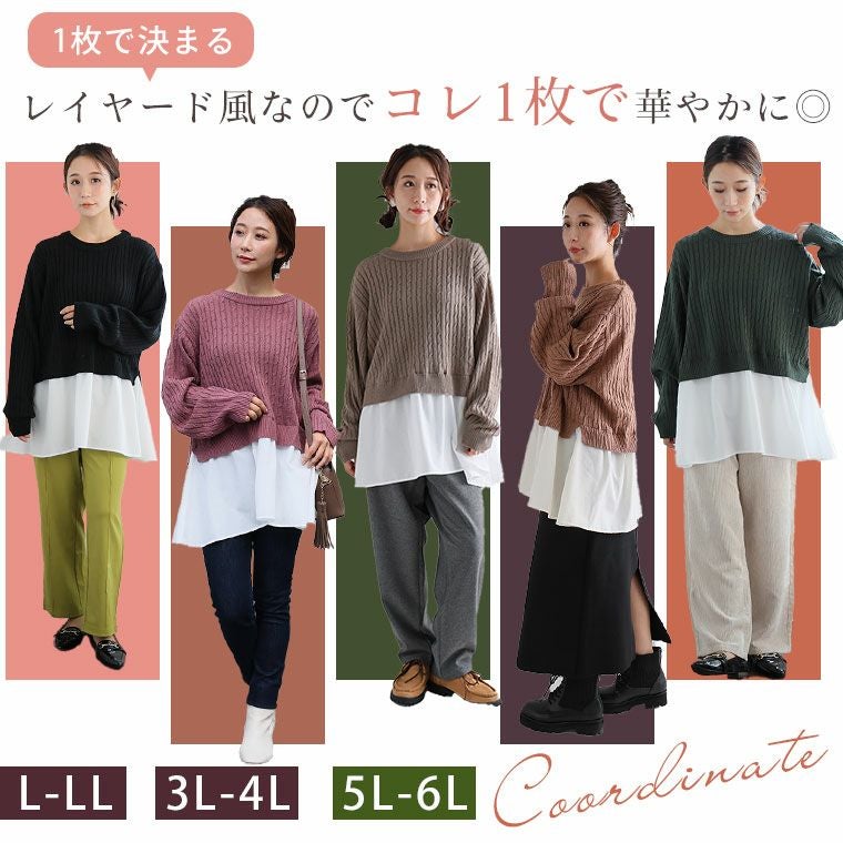 他の画像を見る オリジナル ニット セーター LL 3L 4L 5L 6L 秋 冬 お腹 長袖 フェイクレイヤード 重ね着風 ペプラム 体型カバー 可愛くお腹を隠しちゃえ! ふんわり可愛い ケーブルニット | 大きいサイズの通販ならハッピーマリリン 在庫特価 定価 ¥ 3,490 のところ 価格 ¥ 2,500 税込 4.31 お気に入りに登録する