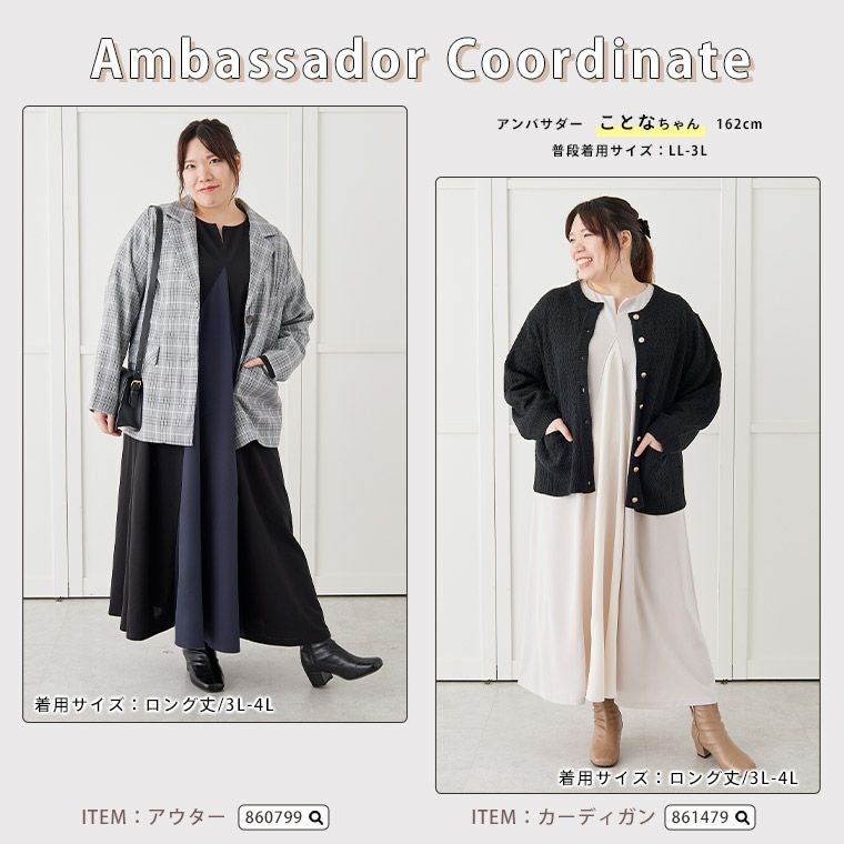 他の画像を見る オリジナル ワンピース ワンピ デザインワンピ LL 3L 4L 5L 6L 7L 8L 長袖 秋 秋物 秋服 冬 冬物 冬服 ぽっちゃり お腹 太もも 高身長さん小柄さんも選べる2丈 視覚効果! 細魅せ叶える ゆったり美人ワンピース | 大きいサイズの通販ならハッピーマリリン 小柄さん丈有 在庫特価 定価 ¥ 3,990 のところ 価格 ¥ 3,000 税込 4.50 お気に入りに登録する