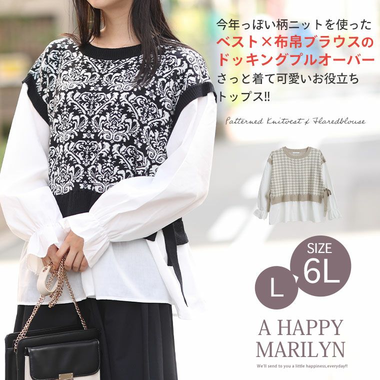 他の画像を見る オリジナル ニット シャツ LL 3L 4L 5L 6L 秋 秋物 秋冬 ぽっちゃり ゆったり お腹 胸周り 二の腕カバー 腰周り 長袖 プラスサイズ フレア ブラウス ドッキング 柄 ニットベスト | 大きいサイズの通販ならハッピーマリリン 在庫特価 定価 ¥ 3,190 のところ 価格 ¥ 2,500 税込 4.62 お気に入りに登録する