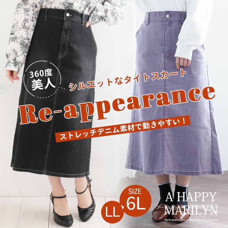 他の画像を見る オリジナル ボトムス LL 3L 4L 5L 6L お尻 腰周り デニムスカート カラーデニム 2丈 選べる ストレッチデニム素材で動きやすい! 360度美人なシルエットな タイトスカート | 大きいサイズの通販ならハッピーマリリン 在庫特価 定価 ¥ 3,490 のところ 価格 ¥ 2,500 税込 4.39 お気に入りに登録する