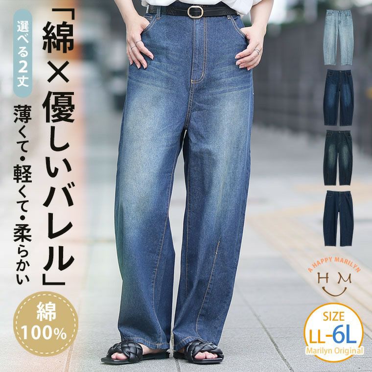 他の画像を見る ボトムス カーブパンツ LL 3L 4L 5L 6L 夏 夏物 夏服 夏用 ぽっちゃり ゆったり プラスサイズ 太もも お尻 綿100% 薄くて軽くて柔らかい!! 夏にピッタリ 選べる2丈 優しいバレルレッグ デニムパンツ | 大きいサイズの通販ならハッピーマリリン 小柄さん丈有 価格 ¥ 3,490 税込 4.17 お気に入りに登録する