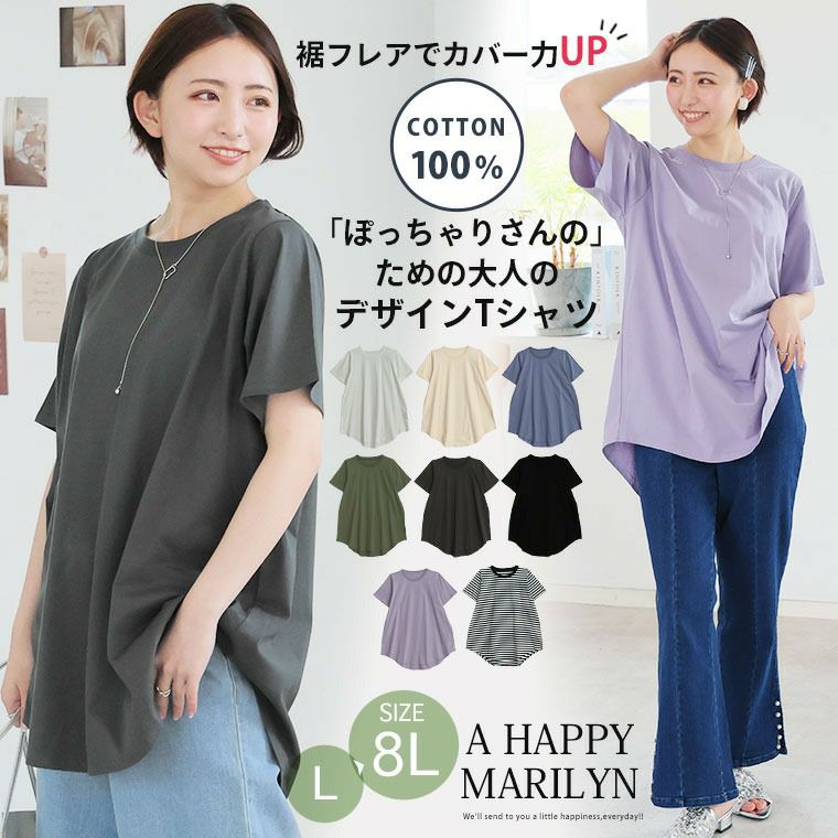 他の画像を見る カットソー チュニック LL 3L 4L 5L 6L 7L 8L 半袖 春 春物 春服 夏 夏物 夏服 ぽっちゃり ゆったり プラスサイズ かわいい おしゃれ cotton コットン お腹 お尻 魔法のお腹カバー 綿100 裾フレア Tシャツ | 大きいサイズの通販ならハッピーマリリン 価格 ¥ 1,980 税込 4.41 お気に入りに登録する