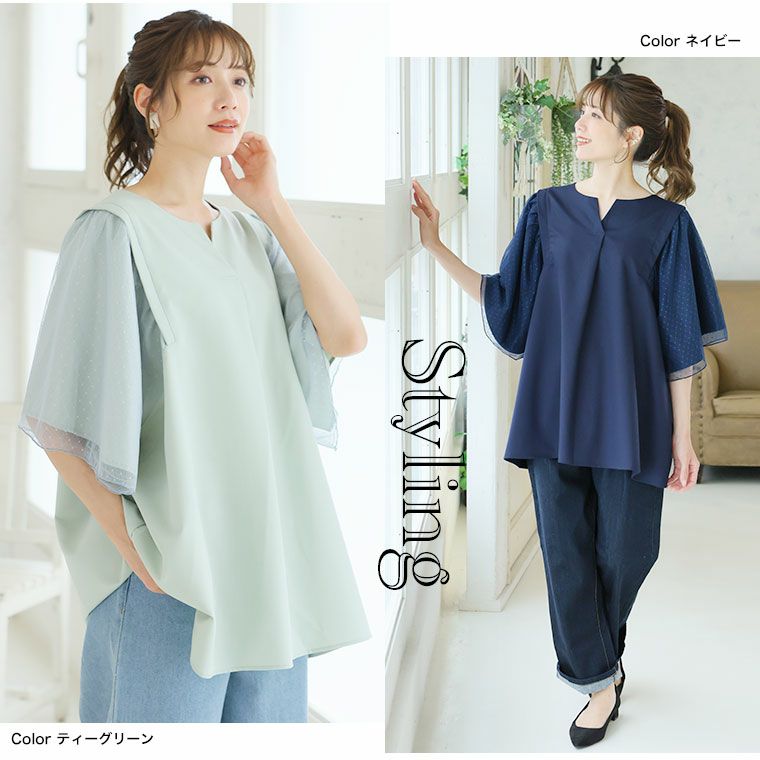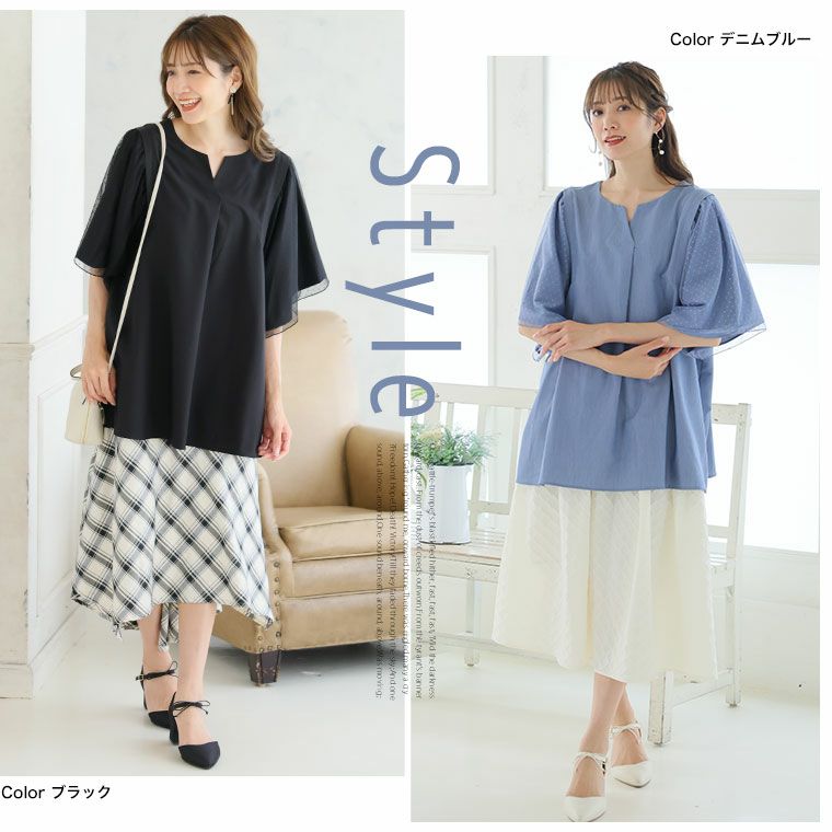 他の画像を見る カットソー LL 3L 4L 夏 夏物 夏服 夏用 ぽっちゃり ゆったり かわいい おしゃれ カジュアル ナチュラル プラスサイズ お腹 胸周り 半袖 フレア チュニック 異素材切替 薄手 涼やか 胸切替え プルオーバー | 大きいサイズの通販ならハッピーマリリン SALE 定価 ¥ 2,490 のところ 価格 ¥ 1,245 税込 3.00 お気に入りに登録する