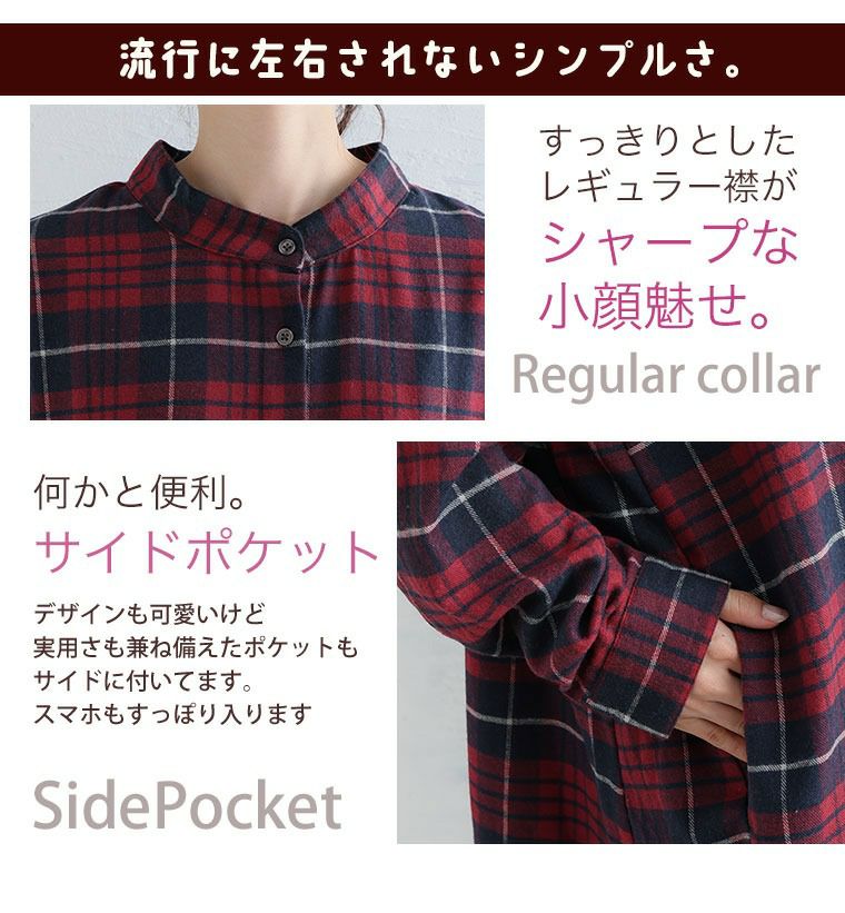 他の画像を見る ワンピ シャツワンピ 羽織り ポケット付き ネルシャツ LL 3L 4L 5L 6L 7L 8L 秋 冬 新色追加!! 身長別選べる2丈 フランネル チェック 細魅せ シャツワンピース | 大きいサイズの通販ならハッピーマリリン 小柄さん丈有 価格 ¥ 2,790 税込 4.29 お気に入りに登録する