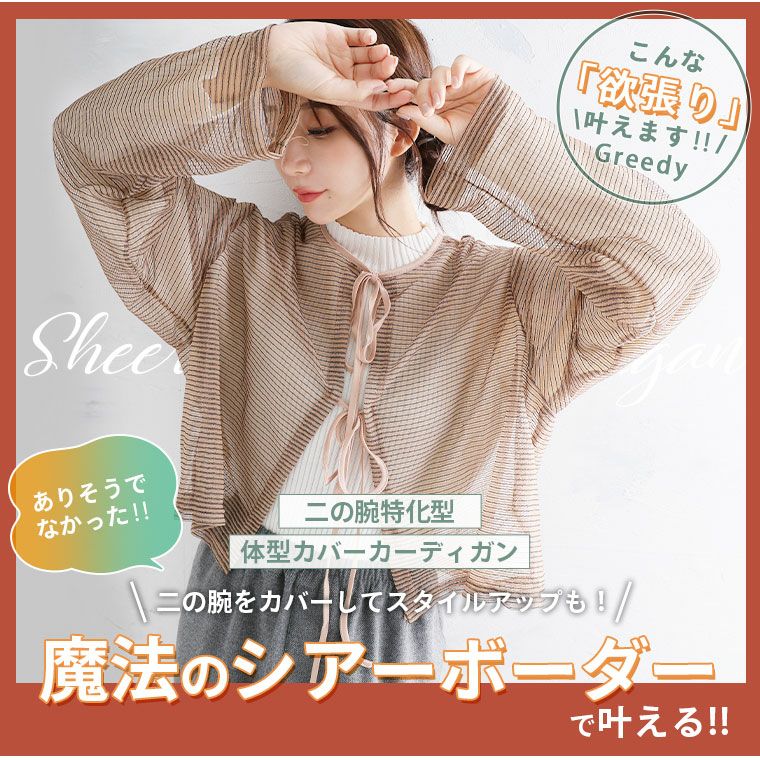 他の画像を見る オリジナル トップス カーディガン カーデガン カーデ 羽織り リボン ボーダー LL 3L 4L 5L 6L 夏 秋 ぽっちゃり ゆったり 適度な透け感で二の腕隠し ボーダー シアー カーディガン | 大きいサイズの通販ならハッピーマリリン 価格 ¥ 2,490 税込 お気に入りに登録する