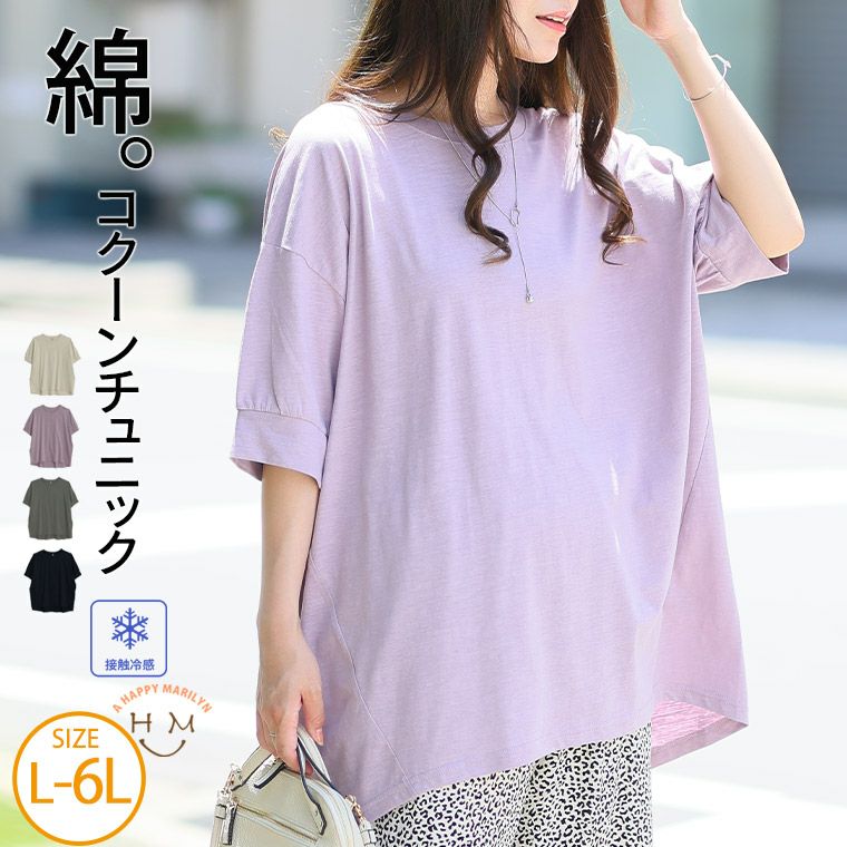 他の画像を見る トップス LL 3L 4L 5L 6L 半袖 夏 夏物 夏服 夏用 ぽっちゃり ゆったり プラスサイズ 接触冷感 かわいい おしゃれ お腹 お尻 二の腕カバー 100%スラブ天竺 ・ ひんやり コクーン コットン チュニック | 大きいサイズの通販ならハッピーマリリン 送料無料 価格 ¥ 1,980 税込 3.67 お気に入りに登録する