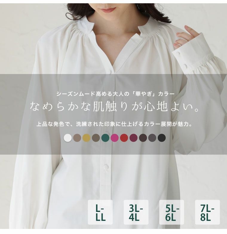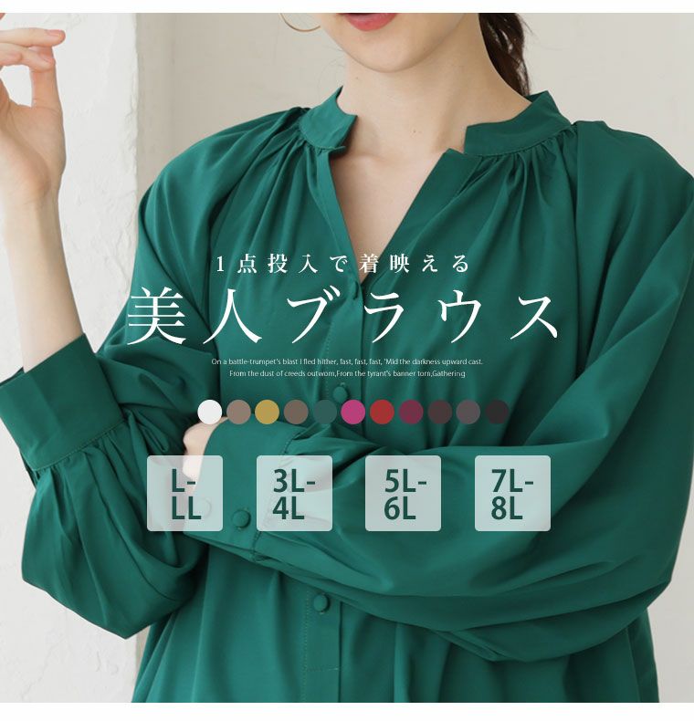 他の画像を見る オリジナル シャツ トップス LL 3L 4L 5L 6L 秋 秋物 秋冬 ぽっちゃり ゆったり お腹 胸周り 二の腕カバー お尻 腰周り 長袖 ナチュラル プラスサイズ 春 後ろ姿美人 スッキリギャザーの美人 スキッパーブラウス | 大きいサイズの通販ならハッピーマリリン 在庫特価 定価 ¥ 3,990 のところ 価格 ¥ 3,000 税込 4.10 お気に入りに登録する