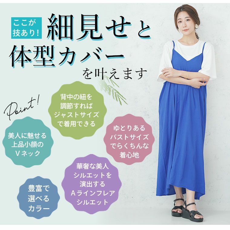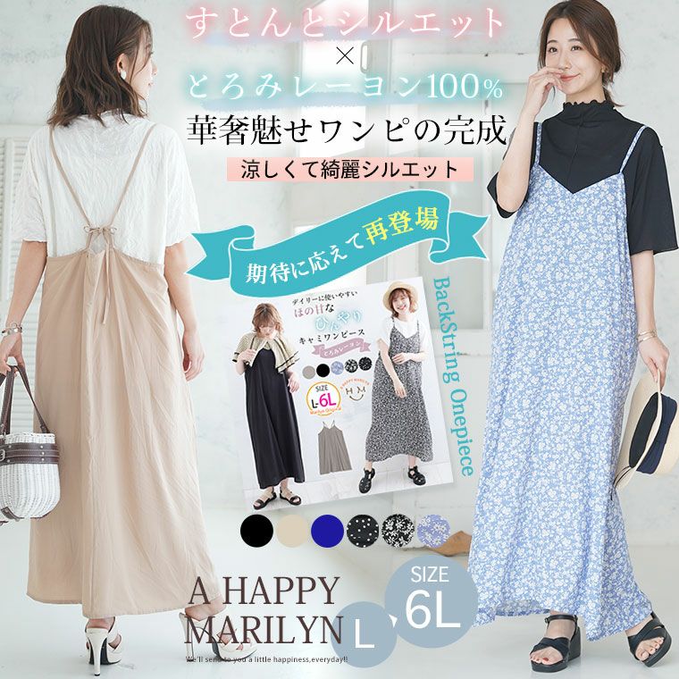 他の画像を見る オリジナル ワンピ LL 3L 4L 5L 6L 夏 胸周り 腰周り 半袖 キャミワンピ 新色追加!! とろみレーヨンでさらっとひんやり♪ すっきり美人後ろ紐 Aライン キャミワンピース | 大きいサイズの通販ならハッピーマリリン SALE 定価 ¥ 2,990 のところ 価格 ¥ 2,390 税込 3.00 お気に入りに登録する