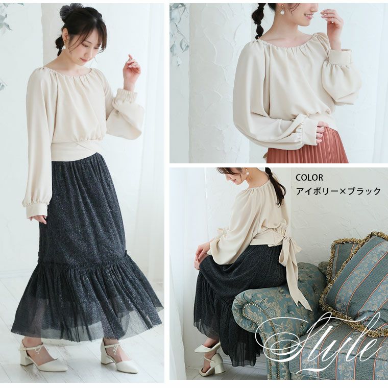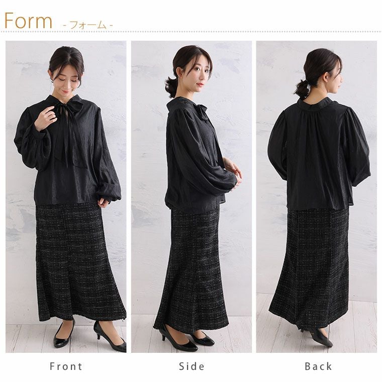 他の画像を見る オリジナル コーデセット 2点セット LL 3L 4L 5L 6L 冬 冬物 冬服 ぽっちゃり ゆったり お腹 太もも 腰周り 二の腕カバー お尻 胸周り 長袖 KAREN バックリボン ブラウス×ラメチュールティアードスカート SET | 大きいサイズの通販ならハッピーマリリン 在庫特価 定価 ¥ 5,490 のところ 価格 ¥ 3,000 税込 3.33 お気に入りに登録する