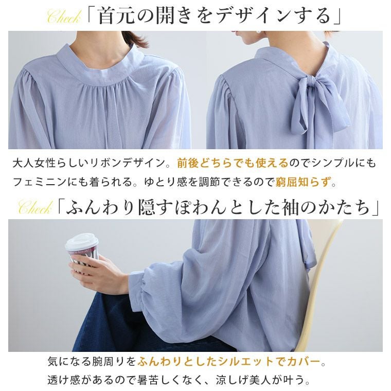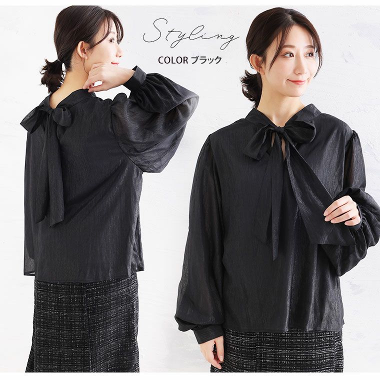 他の画像を見る トップス シャツ LL 3L 4L 春 ぽっちゃり ゆったり お腹 胸周り フェミニン おでかけ パーティ ボウタイ リボン プラスサイズ 楊柳ラメ バルーンスリーブ 2wayブラウス 【セレモニー】 | 大きいサイズの通販ならハッピーマリリン 価格 ¥ 3,790 税込 4.00 お気に入りに登録する