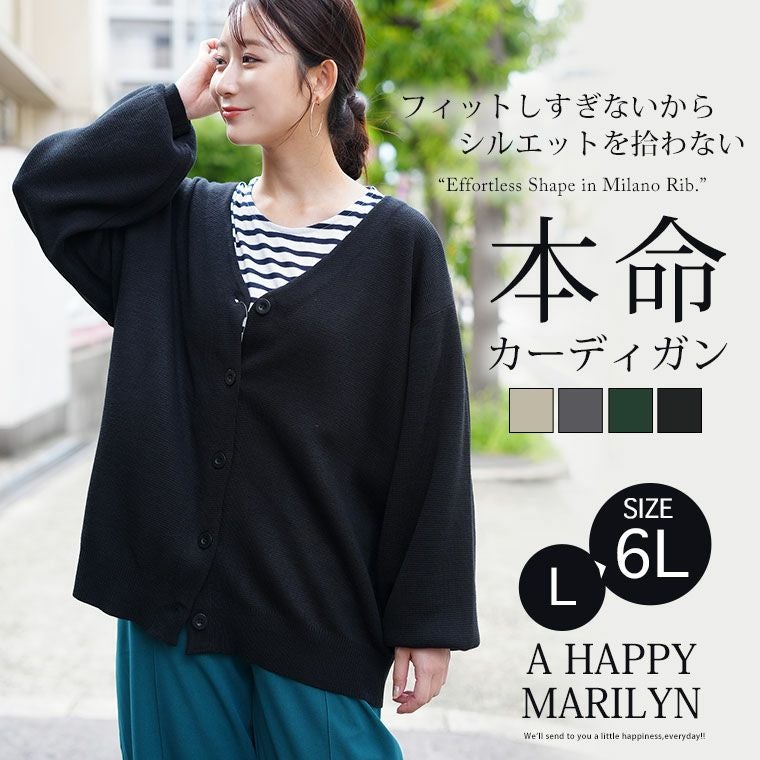 他の画像を見る トップス 羽織り LL 3L 4L 5L 6L 長袖 秋 秋物 秋服 冬 冬物 冬服 ぽっちゃり ゆったり プラスサイズ ニット ベーシック 胸周り お腹 お尻 スッキリ叶うしっかり編地 ミラノリブ カーディガン | 大きいサイズの通販ならハッピーマリリン 価格 ¥ 2,990 税込 4.00 お気に入りに登録する