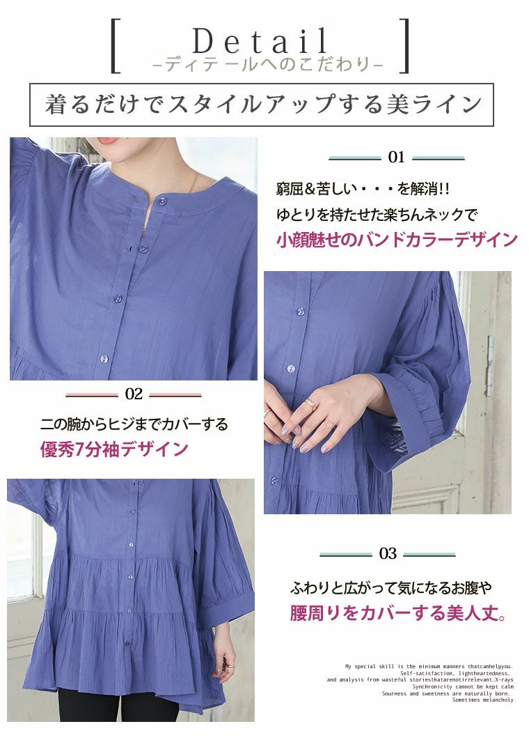 他の画像を見る ブラウス チュニック LL 3L 4L 5L 6L 春 春物 春服 夏 夏物 夏服 ぽっちゃり ゆったり カジュアル ナチュラル 【新作◆3月6日販売】 【風通るプレミアム】 七分袖/長袖が選べる 綿 楊柳 シャツチュニック | 大きいサイズの通販ならハッピーマリリン 送料無料 NEW HIT100 小柄さん丈有 価格 ¥ 2,590 税込 4.47 お気に入りに登録する
