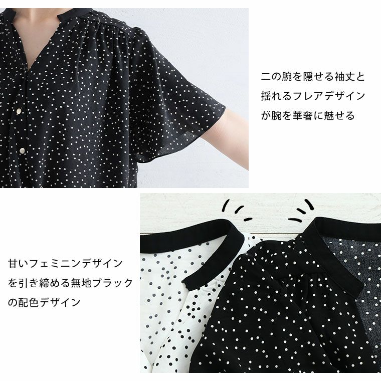 他の画像を見る シャツ トップス LL 3L 4L 5L 6L 半袖 夏 夏物 夏服 夏用 ぽっちゃり ゆったり プラスサイズ かわいい おしゃれ カジュアル ナチュラル Rin デザイン裾・フレア袖 ドット柄 ブラウス | 大きいサイズの通販ならハッピーマリリン 価格 ¥ 3,990 税込 5.00 お気に入りに登録する