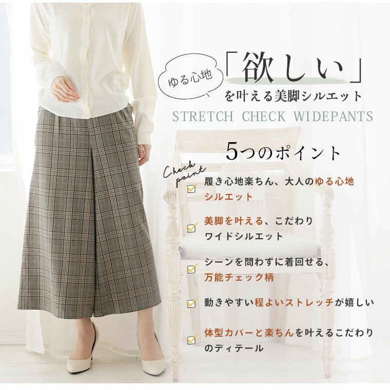 他の画像を見る ボトムス ルーズパンツ LL 3L 4L 5L 6L 秋 秋物 秋服 冬 冬物 冬服 オフィス 大人 着やせ 体型カバー ビジネス 通勤 ママ 入園式 Rin メルティーストレッチ チェック柄 ゆる ワイドパンツ【ウェストゴム】【ストレッチ】 | 大きいサイズの通販ならハッピーマリリン 在庫特価 定価 ¥ 3,990 のところ 価格 ¥ 3,000 税込 お気に入りに登録する