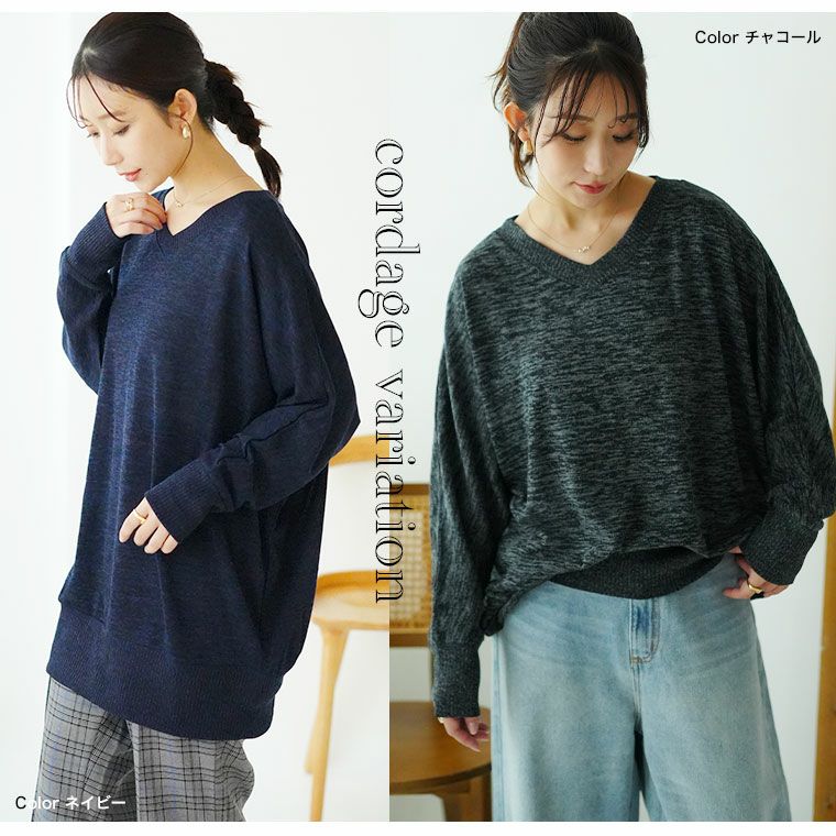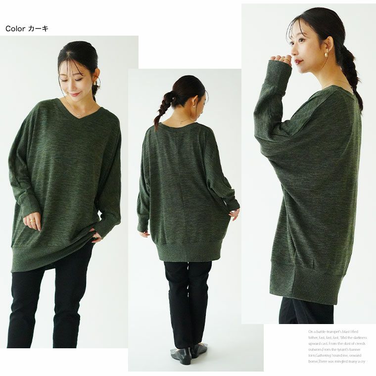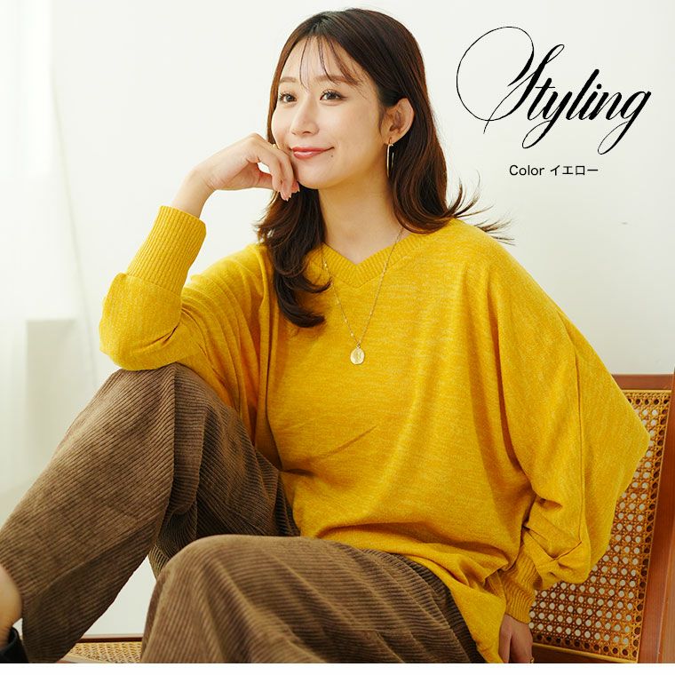 トップス 二ットソー プルオーバー LL 3L 4L 5L 6L 秋 秋物 秋服 冬 冬物 冬服 ぽっちゃり ゆったり プラスサイズ お腹 お尻 二の腕カバー ゆるりとこなれる! 体型カバーが得意な華奢魅せ Vネック ドルマン 長袖 ニットソー トップス | 大きいサイズの通販ならハッピーマリリン
