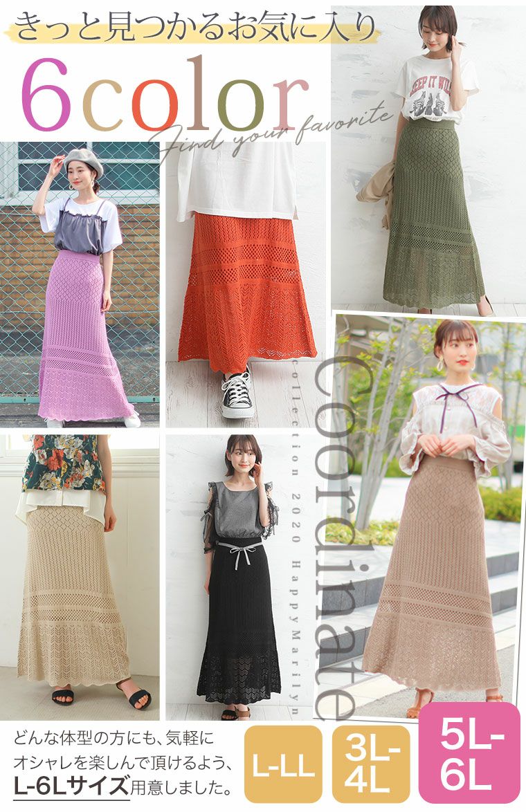 他の画像を見る オリジナル スカート ボトムス LL 3L 4L 5L 6L 夏 夏物 夏服 夏用 綿 ニット サマーニット ゆったり お腹 お尻 腰周り さらりと心地よい 涼やか 透かし編み 綿混 美人 ロング フレアスカート | 大きいサイズの通販ならハッピーマリリン 在庫特価 定価 ¥ 2,990 のところ 価格 ¥ 999 税込 3.96 お気に入りに登録する