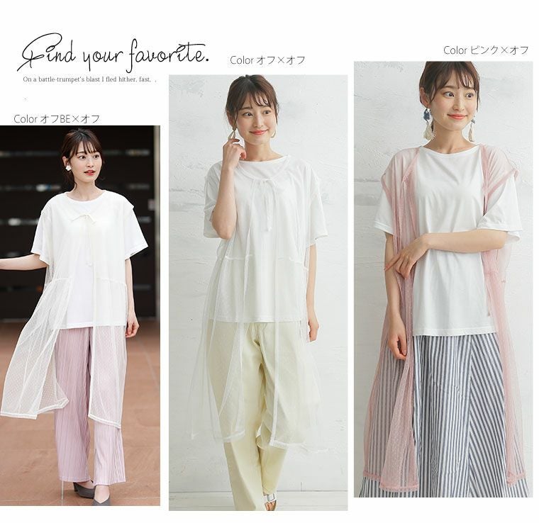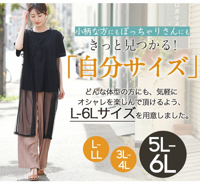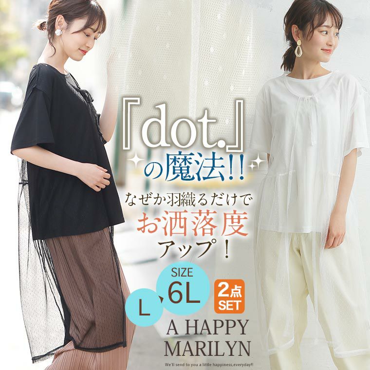 他の画像を見る トップス アンサンブル レイヤード セット LL 3L 4L 5L 6L 夏 夏物 夏服 夏用 ゆったり 胸周り お尻 腰周り 半袖 かわいい ドットチュール トッパー × Tシャツ アンサンブル | 大きいサイズの通販ならハッピーマリリン 在庫特価 定価 ¥ 2,990 のところ 価格 ¥ 999 税込 4.50 お気に入りに登録する