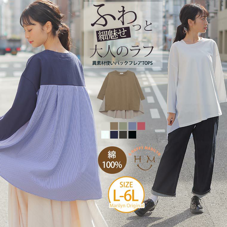 他の画像を見る オリジナル プルオーバー LL 3L 4L 5L 6L 春 春物 春服 夏 夏物 夏服 ぽっちゃり ゆったり お腹 七分袖 綿100% さっぱり コットン 無地 と ストライプ から選べる バックフレア 華奢魅せ楽ちん トップス | 大きいサイズの通販ならハッピーマリリン 在庫特価 定価 ¥ 2,990 のところ 価格 ¥ 999 税込 4.20 お気に入りに登録する