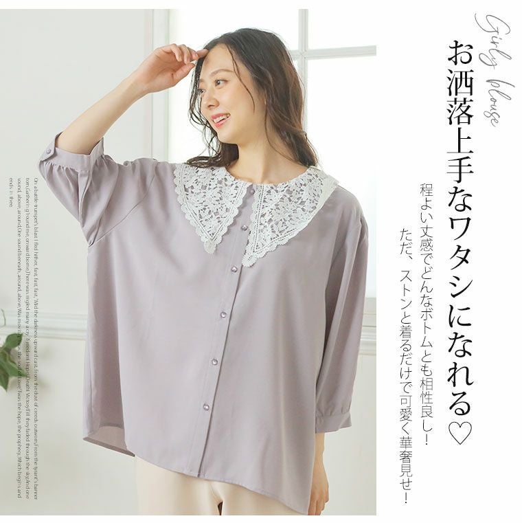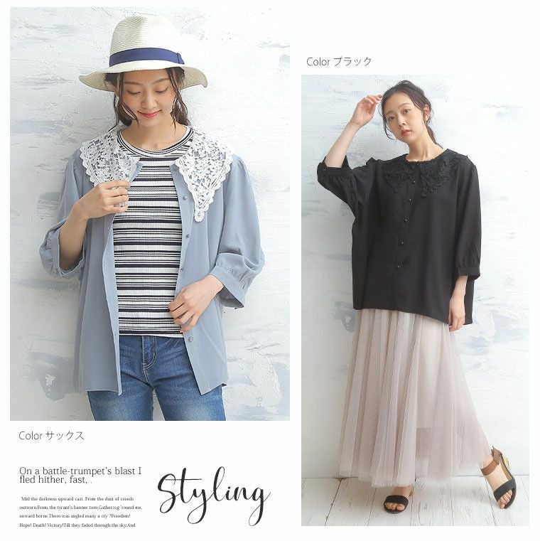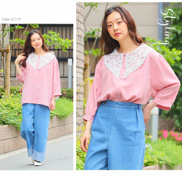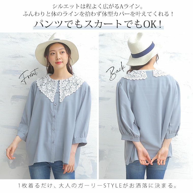 他の画像を見る オリジナル シャツ トップス LL 3L 4L 5L 6L 夏 夏物 夏服 夏用 ぽっちゃり ゆったり かわいい おしゃれ カジュアル ナチュラル ビッグカラー 大きい襟 レース ビッグ襟 レトロ ガーリー 六分袖 ブラウス | 大きいサイズの通販ならハッピーマリリン 在庫特価 定価 ¥ 3,290 のところ 価格 ¥ 999 税込 4.40 お気に入りに登録する