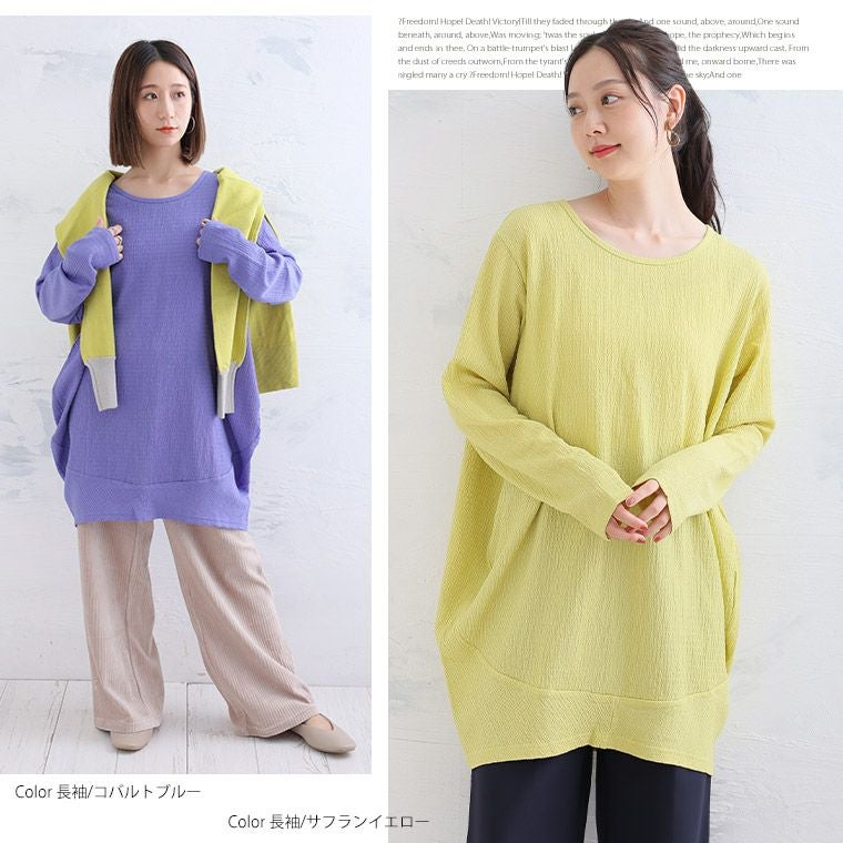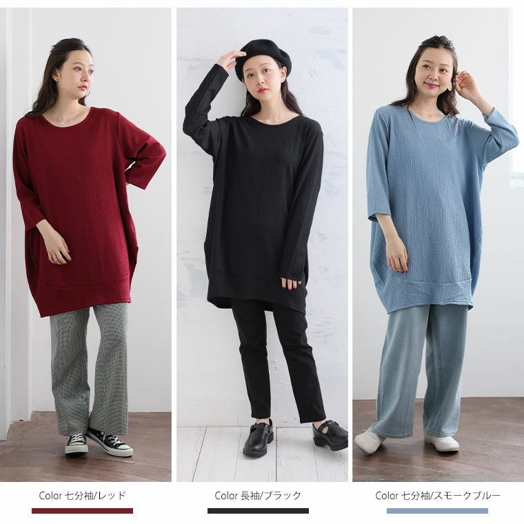 他の画像を見る オリジナル カットソー プルオーバー LL 3L 4L 5L 6L お腹 お尻 ぽっちゃりさんご用達! ラインを拾わず体型カバー 七分袖と長袖で選べる しぼしぼコクーン ふくれ ぽこぽこ 凹凸 ジャガード | 大きいサイズの通販ならハッピーマリリン 在庫特価 定価 ¥ 1,980 のところ 価格 ¥ 999 税込 3.30 お気に入りに登録する