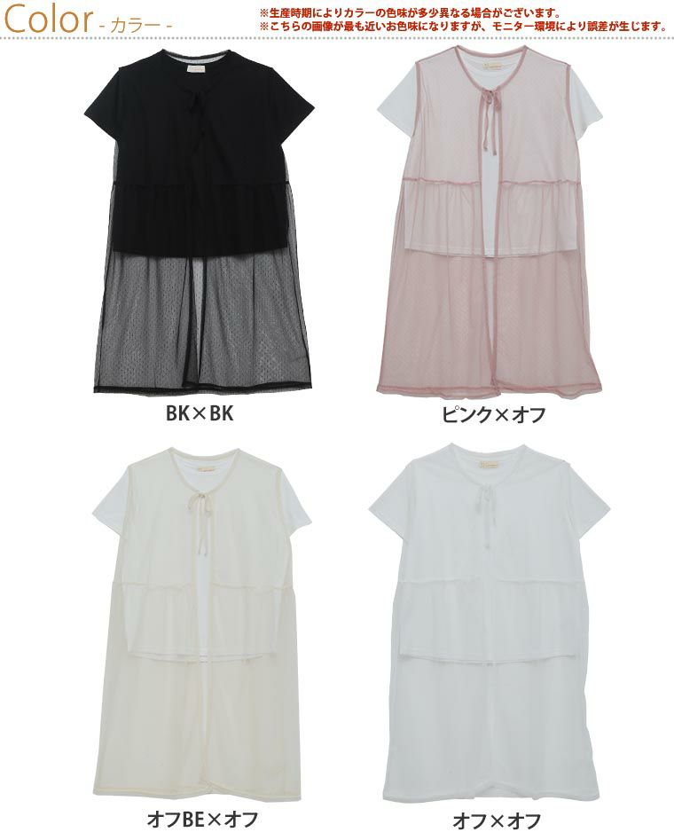 他の画像を見る トップス アンサンブル レイヤード セット LL 3L 4L 5L 6L 夏 夏物 夏服 夏用 ゆったり 胸周り お尻 腰周り 半袖 かわいい ドットチュール トッパー × Tシャツ アンサンブル | 大きいサイズの通販ならハッピーマリリン 在庫特価 定価 ¥ 2,990 のところ 価格 ¥ 999 税込 4.50 お気に入りに登録する