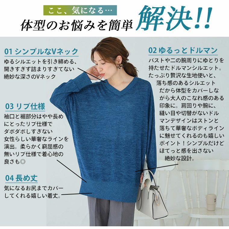 他の画像を見る トップス 二ットソー プルオーバー LL 3L 4L 5L 6L 秋 秋物 秋服 冬 冬物 冬服 ぽっちゃり ゆったり プラスサイズ お腹 お尻 二の腕カバー ゆるりとこなれる! 体型カバーが得意な華奢魅せ Vネック ドルマン 長袖 ニットソー トップス | 大きいサイズの通販ならハッピーマリリン 在庫特価 定価 ¥ 2,190 のところ 価格 ¥ 1,500 税込 4.67 お気に入りに登録する
